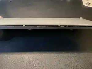 Используйте лопатку или другой клиновидный инструмент, чтобы приподнять пластиковую нижнюю часть от алюминиевого шасси.