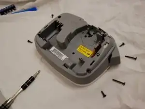 Это устройство легко разбирается и демонстрирует внутреннее устройство этикетатора. Основные компоненты — это батареи и картридж с этикеткой для ленты, а также несколько винтов, чтобы продолжить разборку устройства.