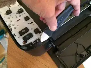 Используя лопаточку (или аналогичный инструмент), освободите защёлки по краю крышки панели управления, затем снимите крышку.