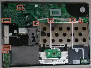 Выверните все шесть винтов, крепящих материнскую плату.
