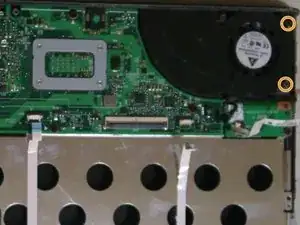 Отверните два винта PH00, удерживающие вентилятор охлаждения.