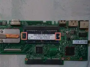 Раздвиньте две металлические защёлки по бокам оперативной памяти; модуль памяти выскочит.