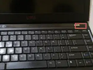 Используя пластиковый инструмент для вскрытия, подденьте верхнюю панель с кнопкой питания. Начните с нижнего правого края, ближайшего к клавиатуре.