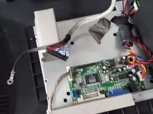 Открытые винты по обеим сторонам (4 слева, 4 справа), крепящие ЖК-панель к задней крышке.