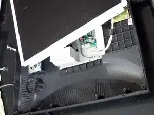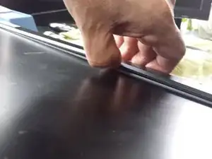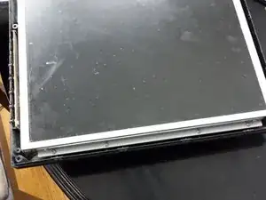 Подготовьтесь к снятию 4 винтов с каждой стороны, чтобы приподнять ЖК-панель. Не пытайтесь полностью снять её после отвинчивания 8 винтов — на задней стороне подключены кабели.