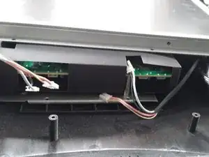 Осторожно приподнимите примерно на 5 см, чтобы открыть доступ к соединениям подсветки: 2 розовых и 2 белых.