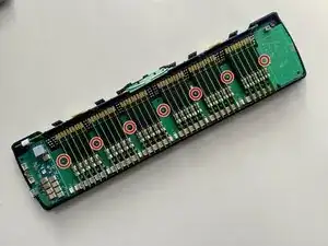 Осторожно с помощью плоской отвертки размера 1 извлеките ячейки из их слотов, как показано, для доступа к винтам на основной плате.