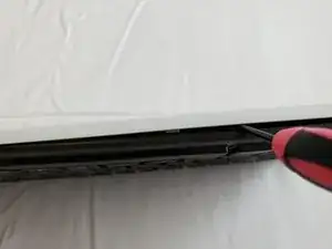 Осторожно подденьте корпус, чтобы раскрыть клавиатуру. Можно использовать отвертку или любой инструмент для поддёма.