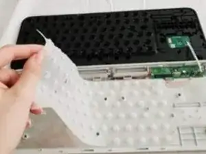 Снимите матрицу клавиш — она мягкая и должна быть прозрачной или белой.