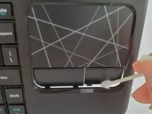 Сухой ватной палочкой аккуратно вытрите сенсорную панель и область вокруг клавиш на внешней стороне платы.