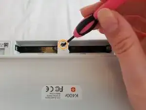Выкрутите винты, расположенные под наклейкой в центре задней части клавиатуры.