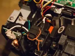 [необязательно] Для запуска вам нужно перепрыгнуть переключатель рядом с лампой, как показано на втором изображении. Как только вы подключите проектор, живые части будут