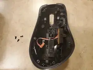 Удалите пять шурупов Phillips #00 длиной 5.5 мм, находящихся под ножками мыши.