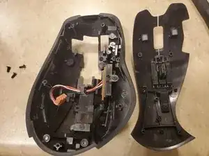 Снимите левая и правая кнопки и сборку блокировки G13 и колесика прокрутки с верхней части корпуса.