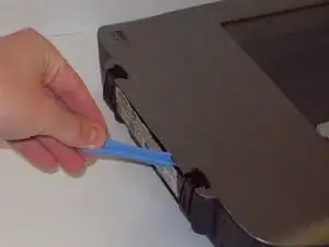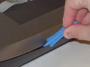 После размещения одного пластикового инструмента в щели, перемещайте другие пластиковые инструменты вдоль щели, чтобы отсоединить верхнюю часть от нижней.