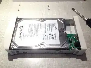 После удаления винтов Вы сможете открыть внутреннее оборудование, которое несет жесткий диск. Осторожно выдвиньте шасси с любой стороны, спереди или сзади. Никаких препятствий нет, так что этот этап зависит только от Ваших личных предпочтений.