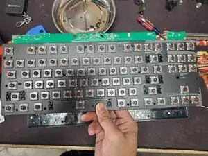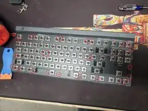 Снимите колпачки клавиш, равномерно поднимая каждую клавишу. Помогает использовать запасную кредитную карту для подъёма нижнего края клавиши и палец для поднятия верхнего края — так клавиши снимаются быстрее.