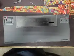 Снимите наклейку-крышку «батареи». Обратите внимание, что у меня проводная G515. У меня она снялась в двух частях (одна — наклейка, другая — толстая пластиковая плёнка). Помогает фен/тепловой пистолет.