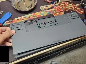 Выверните винты с крестообразной головкой (Phillips) спереди клавиатуры.