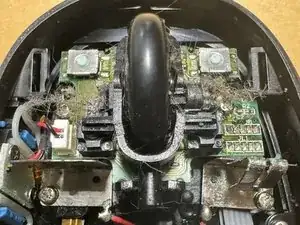 Очистите колесо и мышь - много волос, как показано. Помогает сжатый воздух.