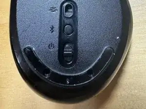 Четыре винта T5 откроют мышь. Два коротких спереди, два длинных сзади.