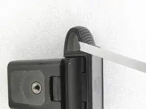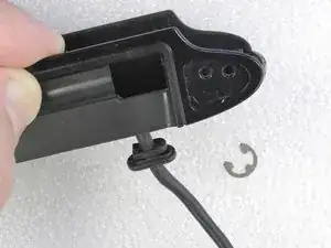 Освободите зажим, который фиксирует держатель кабеля. Вытяните держатель кабеля из камеры.