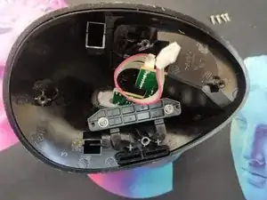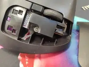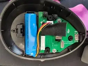 После того как вы отвинтите четыре винта на дне, мышь свободно разделится на две части. Затем аккуратно отключите кабель, соединяющий половины (можно использовать специальный инструмент или аккуратно поддеть плоской отвёрткой).