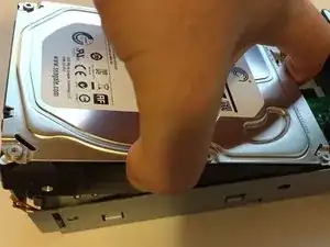 Диск нужно толкнуть назад, от соединения с данными и вверх, чтобы его вынуть. Потребуется немного покачать его.