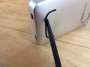 Вставьте одну из прочных лопаток между пластиковой верхней частью и алюминиевым корпусом. Начните с конца с USB-разъемом и сдвигайте к одной из сторон; оставьте её в этом положении.