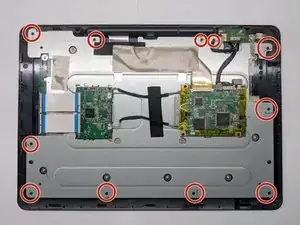 Открутите 11 винтов Phillips #00, удерживающих металлическую деталь на передней пластиковой раме