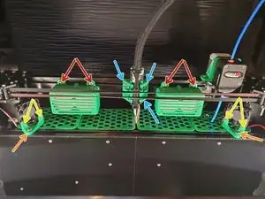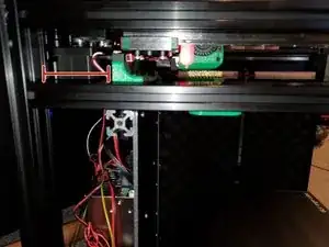 Затяните крепление направляющих по оси Z тем же способом, как в шаге 10 раздела «Сборка рамы».