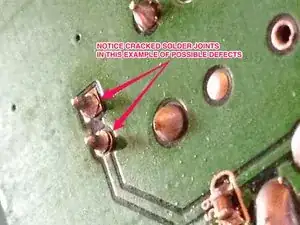 Ищите дефекты, такие как: трещины, следы горения, признаки коррозии, вздутые компоненты, необычные паянные соединения ...