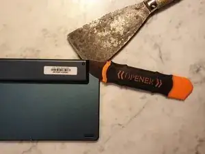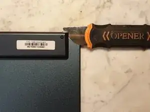Начните с поддевания одного угла тонким инструментом для поддевания.