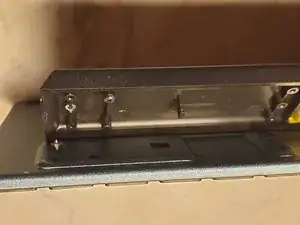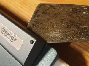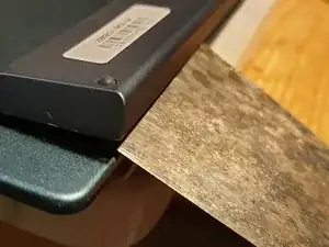 Затем вам нужно вставить лопатку или выбранный инструмент под углом, так как плата с винтами имеет выступающую кромку.