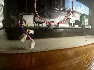 Отключите красно-синий кабель от материнской платы на боковой стороне и снимите с направляющих.