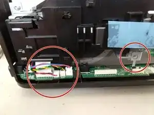 Обратите внимание, что левая крышка подключена к плате. Поднимите спереди и вытяните.