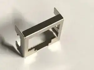 5- Наденьте нержавеющую рамку поверх существующего разъёма RJ45. Нержавеющая лицевая рамка имеет 2‑зубца, которые можно поджать пинцетом (или аналогичным инструментом) для плотной посадки по краю существующего (сломанного) разъёма RJ45. ПРОВЕРЬТЕ ПОСАДКУ ... при необходимости подправьте, зубцы из нержавейки могут требовать небольшой регулировки.