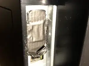 8- ЕСЛИ ВСЕ РАБОТАЕТ ... ПРИКЛЕЙТЕ НЕБОЛЬШОЙ КУСОК ЛЕНТЫ (скотча) на разъём RJ45 и прижмите рамку как можно глубже. ЖДИТЕ 24 ЧАСА для полного полимеризования. ПРИМЕЧАНИЕ: будьте ОЧЕНЬ осторожны при нанесении булавочных капель клея, НЕ допускайте попадания клея внутрь контактов разъёма RJ45, по понятным причинам ;-).