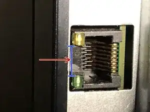 Очистите нержавеющие рамки изопропиловым спиртом, также протереть край сломанного разъёма RJ45. Новая рамка закроет зелёный и жёлто‑янтарный индикаторы, они по‑прежнему частично видны при свечении или мигании.