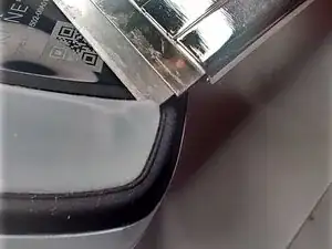 Можно слегка поддеть здесь, подавая силу назад к рамке (чёрная часть на фото), при этом нажимая крышку вперёд и от рамки.