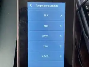 Откройте «Настройки температуры» и выберите филамент, который собираетесь использовать.