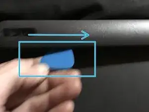Придётся снять «головную» часть клавиатуры, которая закреплена защёлками. Используйте пластиковый инструмент для помощи. Она должна полностью отделиться от клавиатуры.