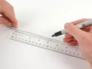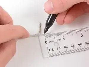 Используйте ручку, чтобы поставить отметку примерно в 0,75 дюйма (2 см) от края среза на стороне кабеля, подключённого к блоку питания.