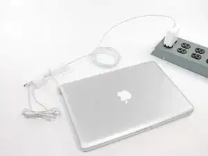 - Используйте переходник MagSafe как обычно для зарядки MacBook.