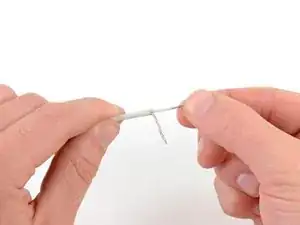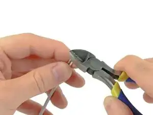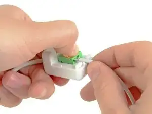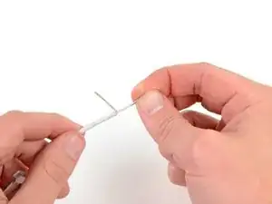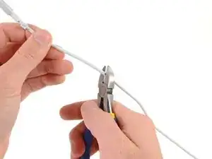 Используйте кусачки или ножницы, чтобы разрезать кабель по сделанной отметке — примерно в 4 дюймах от разъёма MagSafe. Отложите провод с разъёмом MagSafe в сторону для последующего использования.