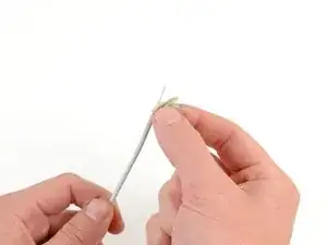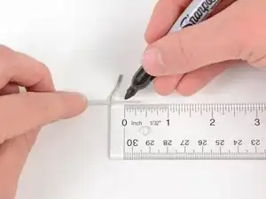 Используйте ручку, чтобы поставить отметку примерно в 3/8 дюйма (1 см) от конца внутреннего провода.