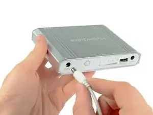 Чтобы зарядить аккумулятор HyperJuice первого поколения, подключите штекер из Большой Волшебной Коробки к порту CHARGE аккумулятора HyperJuice.