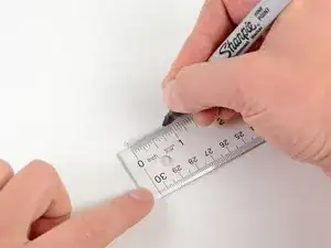 Совместите второе по величине отверстие с меткой, сделанной на предыдущем шаге.
