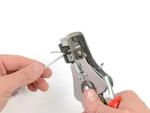 Сожмите ручки инструмента, чтобы снять внешнюю оплётку кабеля и обнажить провода под ней.