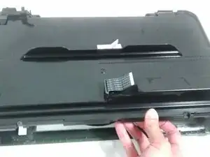 Потяните заднюю панель к себе и поднимите её от остальной части крышки принтера.
